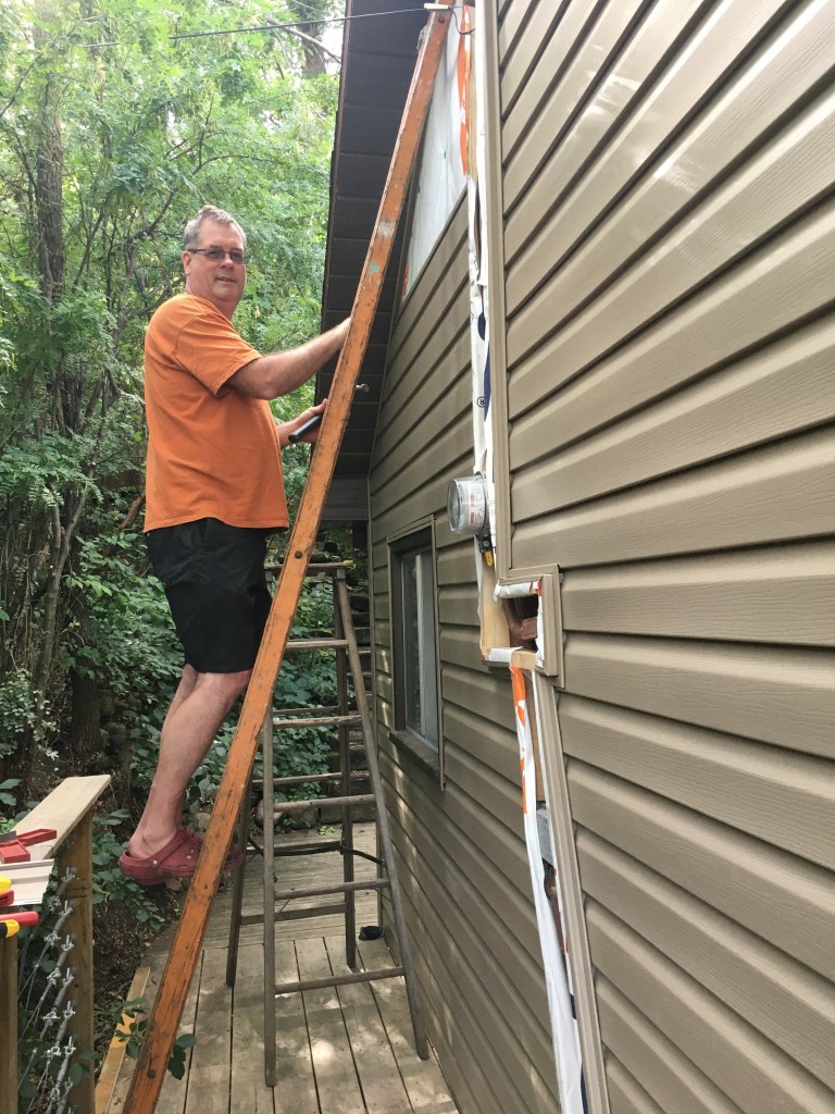 This was a 100 year old cabin that was transformed to look like new. The old wood siding was so dry and cracked that you could see through it in places. 3/4 inches of styrofoam insulation, house wrap and then siding made it look new againSomeone wanted to get rid of their stone patio, so I recycled them for this spot. It turned out great!BeforeAfterNo more leaky taps.